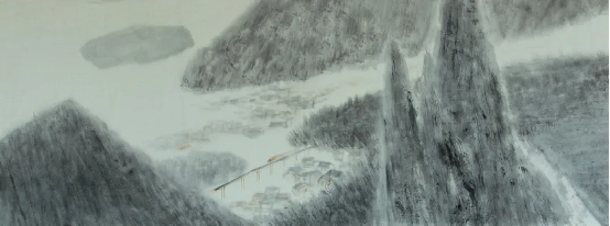 黄冈师范学院 蔡小平 《云起新途》纸本水墨 34cm×91cm
