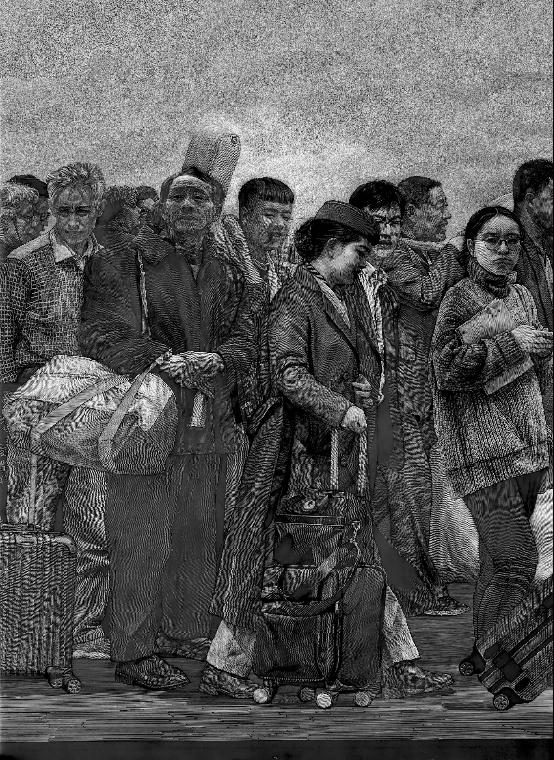 湖北工程学院 曹芳《走过正午两点的车站》凸版100cmx140cm