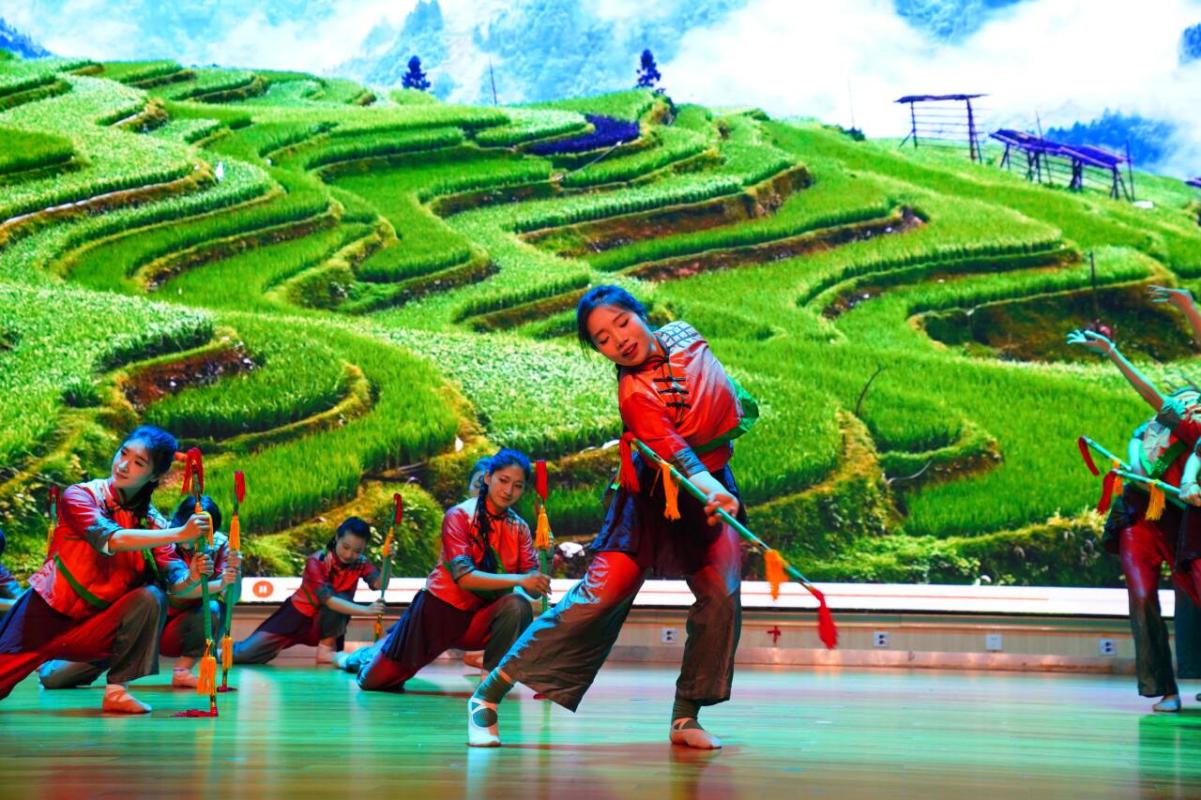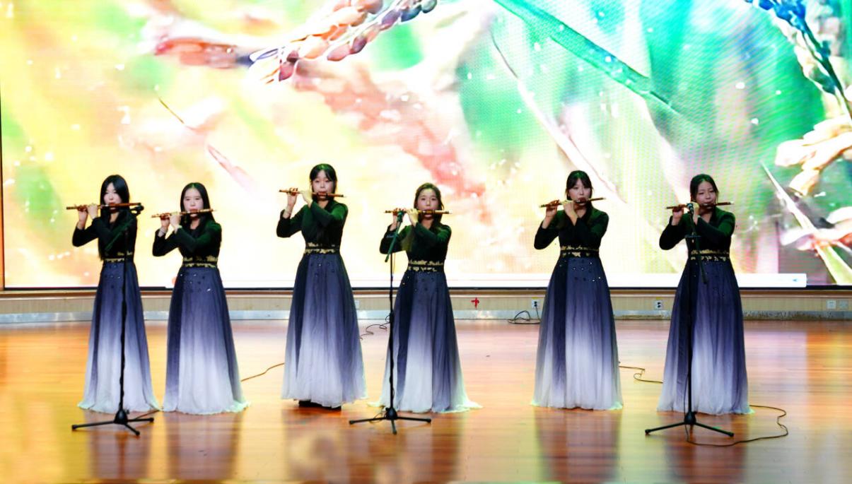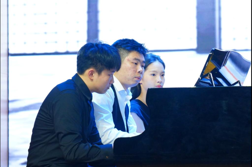 钢琴四手联弹《皮亚佐拉》打破传统边界,以爵士的自由碰撞古典的严谨,尽展南美探戈的炽热风情;表演唱《绣红旗》依托红色经典,借年轻嗓音传递对先辈的深切缅怀与崇高敬意;女生群舞《一把青秧》巧妙融农耕意象于翩跹舞步,舞出春意盎然的田园诗意。