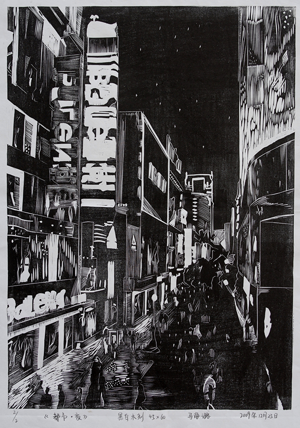 版画《都市夜》 马海璐(美教2007级)