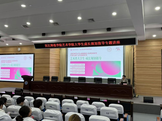 为助力艺术类大学生明确成长方向、规划职业路径,10月16日下午,我集团联合湖北省艺术教育协会,在崇文楼C101和尚艺楼A501分别举办“艺术类大学生成长规划指导”专题讲座。讲座分别由湖北省艺术教育协会高等艺术教育生涯规划师肖亚庭和夏菁蔓主讲,美术学、绘画、数媒、音乐学、舞蹈教育等专业学生225人现场聆听了讲座。