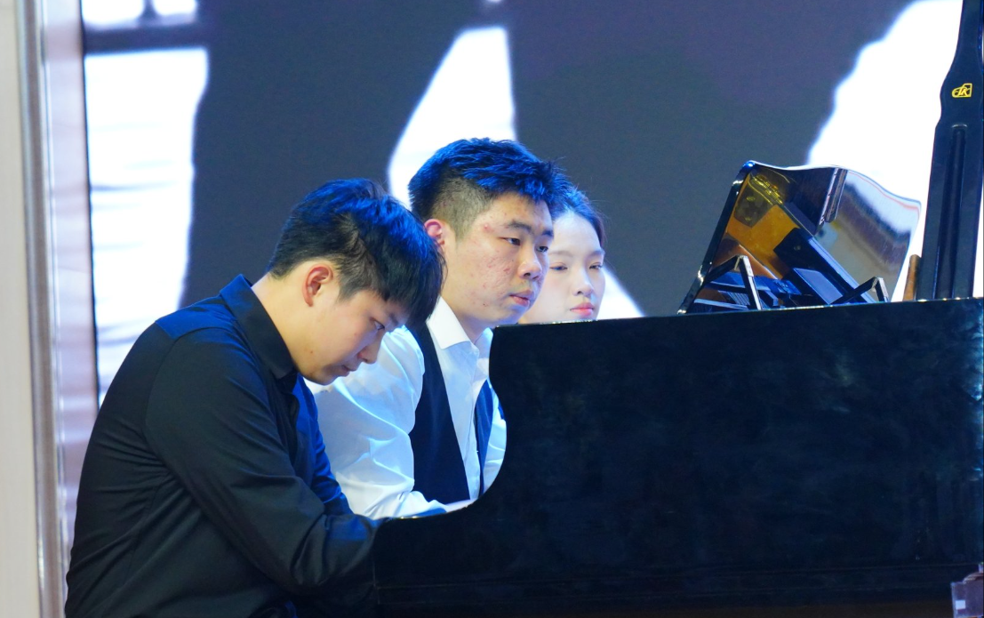 10月23日晚7:00,在我集团“艺启新程·美育未来”迎新晚会的舞台上,三位音乐学专业校友的回归成为当晚最动人的篇章。2023届李洪开、2024届陈书锋与2025届陈新坤重返母校,分别献上了器乐合奏《神剑灵光》与钢琴四手联弹《皮亚佐拉》。他们以精湛的专业实力回馈母校,用动人的艺术演绎,在校友与在校学子之间架起了一座薪火相传的桥梁。