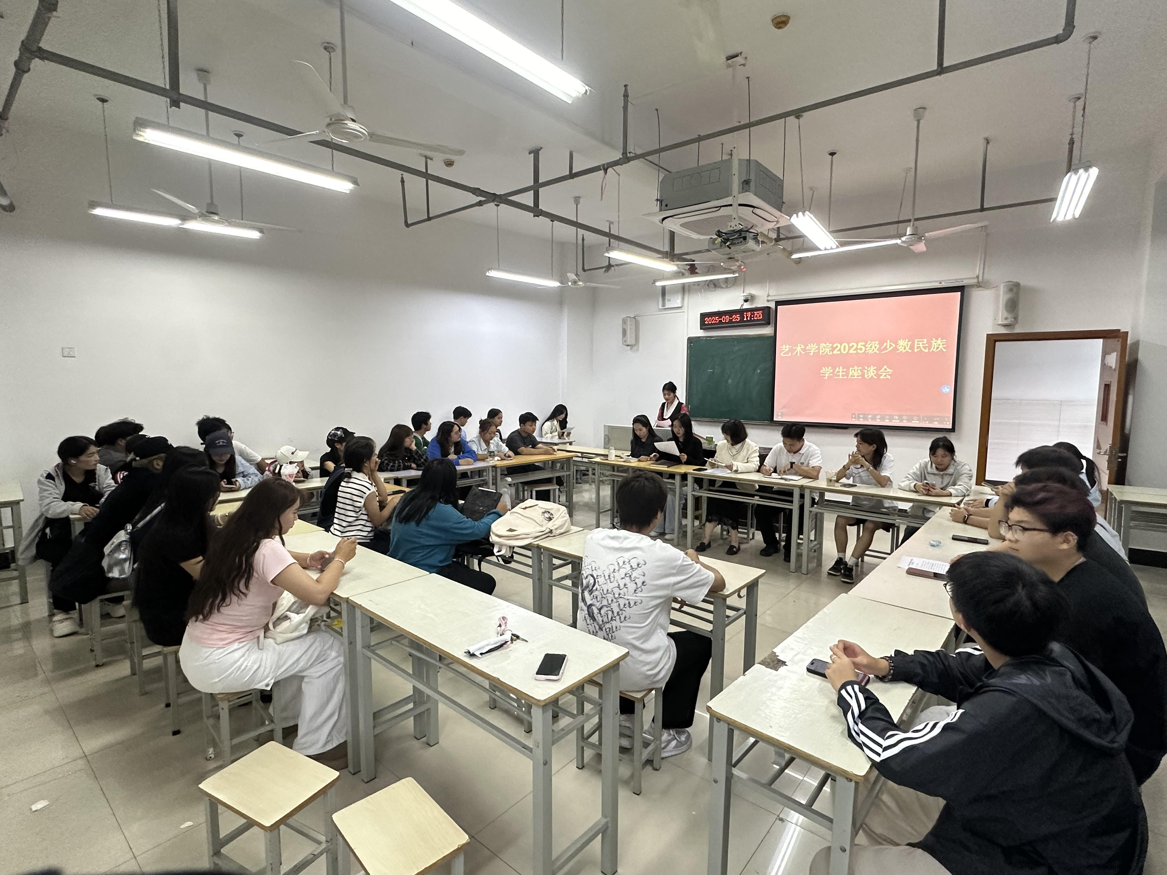 为帮助2025级少数民族新生更好地适应大学环境,及时了解并解决他们在学习与生活中遇到的困难,888集团官网于9月25日在尚艺楼组织召开少数民族学生座谈会。学院分党委副书记崔蕾、各年级辅导员、少数民族老生代表以及2025级全体少数民族新生参加座谈。